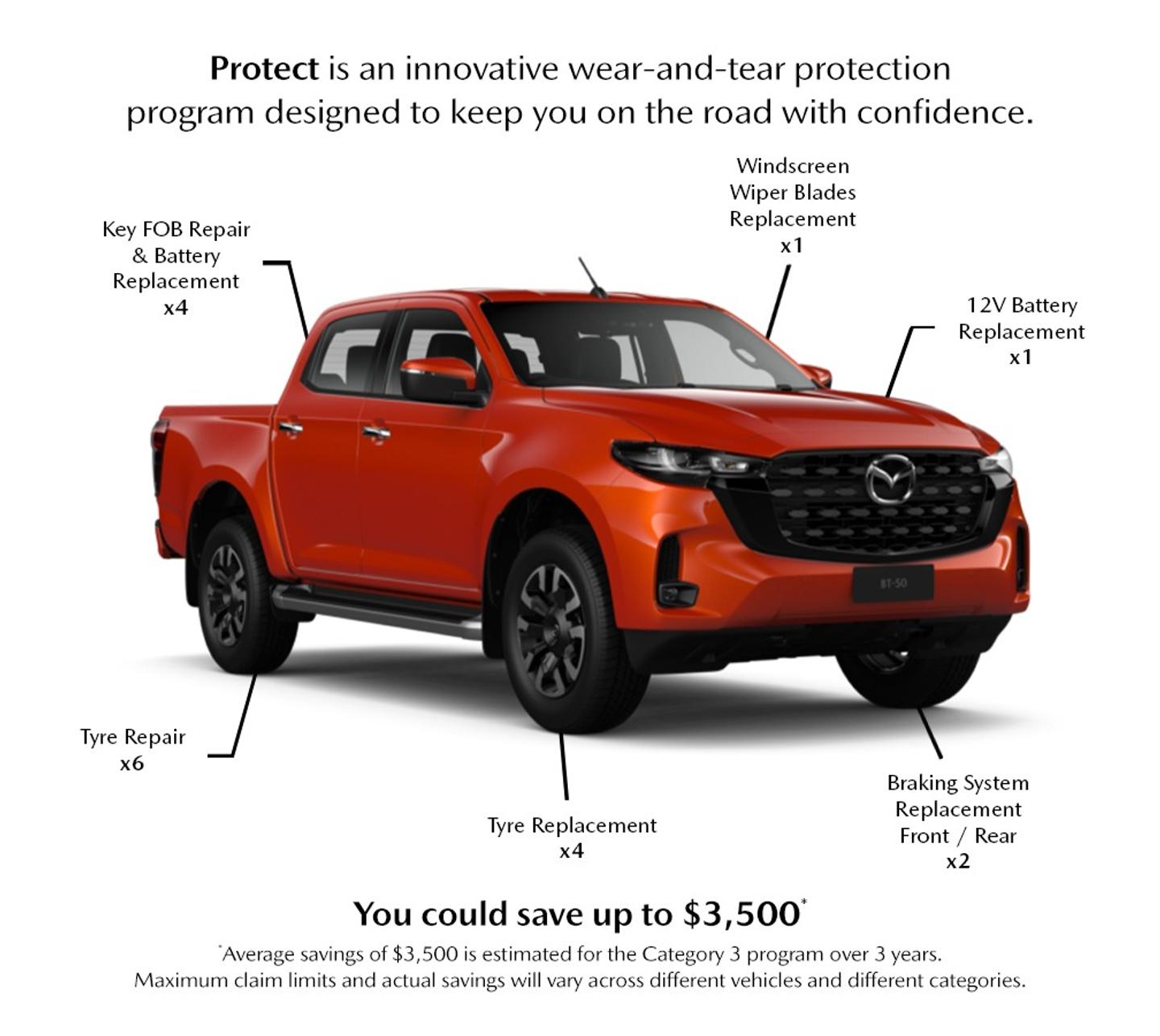 The 3 Year Protect Plan is a simple, cost-effective wear-and-tear protection plan designed to keep you confidently on the road. It covers essential components often excluded from standard servicing — including key fobs, wiper blades, 12V batteries, tyres, and braking systems — helping reduce unexpected repair costs.